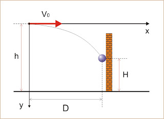 D = 5 m. Determine a altura H do ponto onde a bolinha colide com a parede. Despreze a resistência do ar e considere g = 10 m/s2.