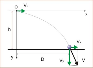 b) a distância D entre o ponto em que a bolinha atinge o solo e a vertical de lançamento (alcance);